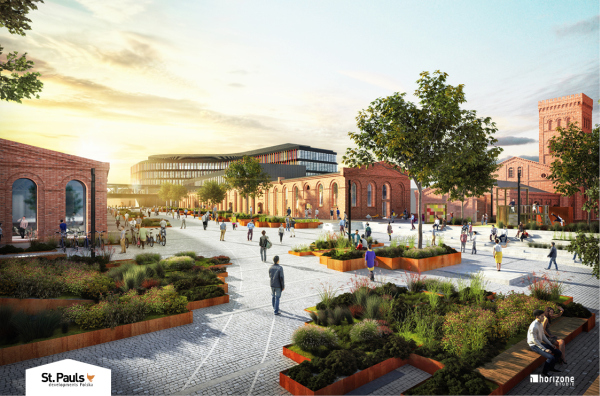 Pracownia projektowa Horizone Studio z Krakowa przygotowała projekt zabudowy ponad 2 hektarowej działki na obszarze Księżego Młyna w Łodzi, na której pojawi się ogólnodostępna, tętniąca życiem, atrakcyjna przestrzeń publiczna z placem wypełnionym zielonymi wyspami zachęcającymi do relaksu oraz wtopiony w otoczenie nowy 5-kondygnacyjny budynek biurowy wraz z garażem podziemnym. Znajdujące się na terenie inwestycji pozostałości dwóch zabytkowych budynków magazynów bawełny czeka gruntowna rewitalizacja.