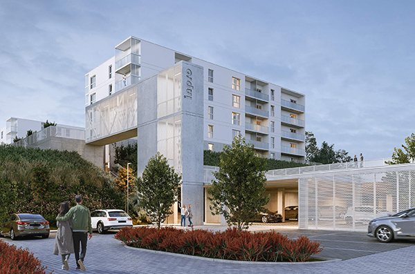 Charakterystycznym punktem osiedla będzie oryginalna konstrukcja zewnętrznej windy, która nie tylko stanie się wizualnym wyróżnikiem inwestycji, ale także zapewni wygodną komunikację między poszczególnymi kondygnacjami kompleksu.