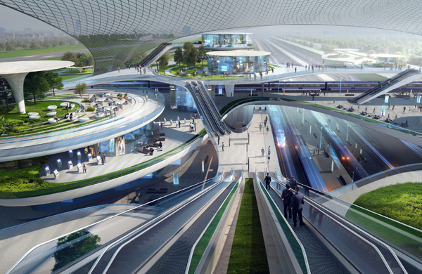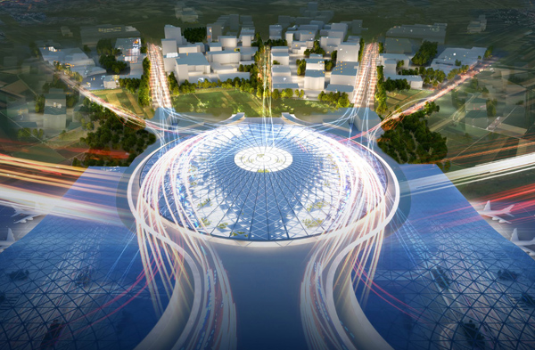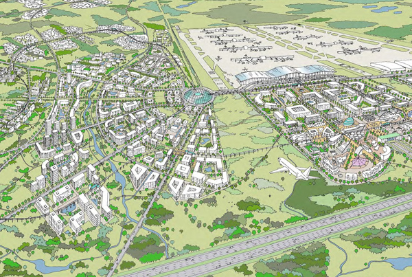 Biuro projektowe Benoy zaprezentowało całościową wstępną propozycję zagospodarowania portu lotniczego wraz z okolicznymi terenami. Położono nacisk na ekologię i zrównoważony rozwój, umiejscawiając pod ziemią część dróg i linii kolejowych. W centrum znalazł się przykryty przeszklonym dachem węzeł przesiadkowy. Strefy terminala przenikałyby się wzajemnie, wewnątrz przewidziano maksymalne doświetlenie powierzchni i dużą ilość zieleni.