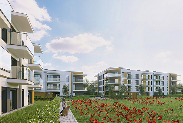 Lokale usytuowane na parterze będą wyposażone w rolety zewnętrzne, a ich mieszkańcy będą mieli do dyspozycji własne ogródki. Z kolei właściciele mieszkań na wyższych kondygnacjach skorzystają z balkonów. Na terenie osiedla zaplanowano również plac zabaw, wózkownię i rowerownię. Części wspólne będą pełne zieleni. Całość uzupełnią elementy małej architektury.