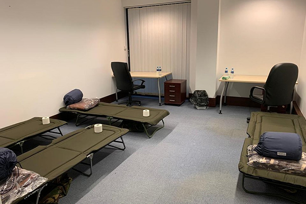 Miejsca noclegowe dla uchodźców w Plazie i biurowcu Atrium