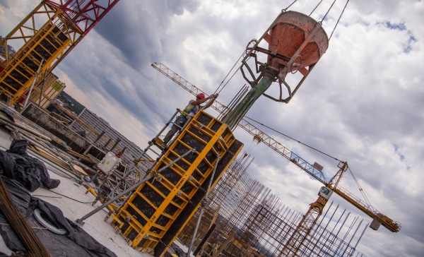 – Obecnie prowadzimy prace związane z betonowaniem stropu 12 piętra. Do sprawnego transportu betonu na najwyższe kondygnacje wykorzystujemy pompę kołową o długości 62,5 m, która jest wspomagana przez specjalistyczne rurociągi rozprowadzone po stropie – mówi Wojciech Adam, kierownik budowy z firmy Strabag.