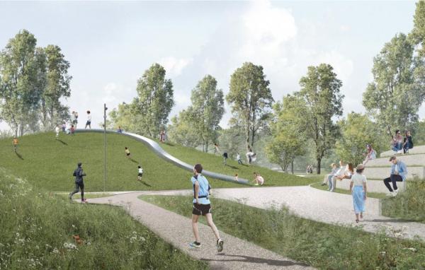W zwycięskiej koncepcji zastosowano wzniesienia terenu oraz zbiornik wodny, które stanowią bazę dla programu rekreacyjnego, atrakcyjnego dla profesjonalistów i amatorów. Program ten oferuje ciekawe propozycje aktywnego spędzania czasu także zimą w formie saneczkarstwa, narciarstwa biegowego i łyżwiarstwa. Sąd konkursowy zwrócił również uwagę na funkcjonalne rozwiązanie strefy rozgrzewkowej dla stadionu głównego, w skład której wchodzi oddzielne pole do rzutów, boisko do rugby wraz z czterotorowym treningowym stadionem lekkoatletycznym, na którym mogą być przeprowadzane zawody lekkoatletyczne niższej rangi we wszystkich konkurencjach, poza biegiem z przeszkodami. Poprawnie rozwiązano układ budynku zaplecza sportowego. Zaproponowana całościowa koncepcja odpowiada przedstawionym w warunkach konkursu realiom finansowym.