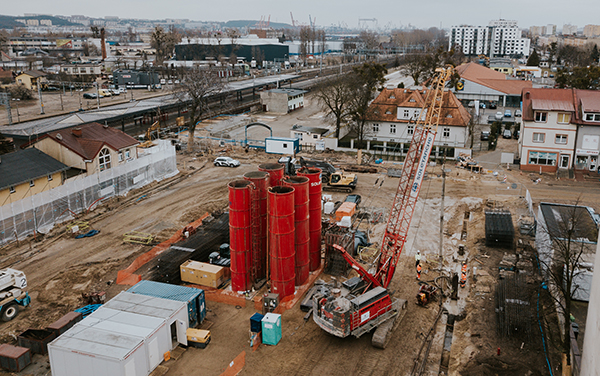Firma Soletanche Polska rozpoczęła realizację murków prowadzących – niezbędnych do wykonania technologii ścian szczelinowych, tym samym prace przy przebudowie Placu Dworcowego w Gdyni Chyloni weszły w kolejną fazę. Zadaniem spółki jest wykonanie fundamentowania specjalistycznego parkingu podziemnego będącego częścią węzła integracyjnego połączonego z peronami tutejszego Dworca.