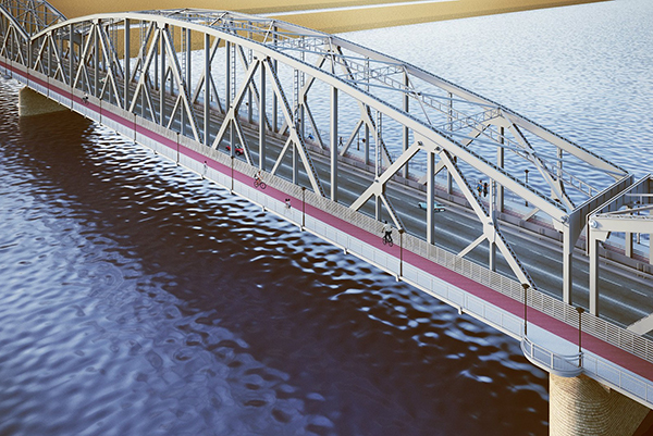 Wykonawcą rozbudowy mostu jest konsorcjum spółek Intop Warszawa (lider) oraz Euro-Darmal. Zarządzanie i nadzór nad inwestycją pełni gdańska firma Optemconsult. Projekt zakłada poszerzenie wsporników chodnikowych do 4,2 m, co pozwoli na rozdzielenie ruchu pieszego i rowerowego, z każdej strony mostu. Wykonawca naprawi także istniejącą płytę pomostu. Wykonane zostanie nowe wyposażenie: kapy chodnikowe, nawierzchnia jezdni i chodników, odwodnienie, oświetlenie, iluminacja i bariery drogowe. Kontrakt o wartości 122,8 mln zł będzie realizowany przez 20 miesięcy.