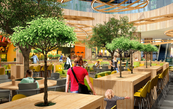 Utworzone zostaną też strefy odpoczynku - wdwóch miejscach na poziomie +1 pojawią się drewniane siedziska o ergonomicznym kształcie. Przebudowana zostanie również ściana dekoracyjna ciągnąca się przez trzy kondygnacje galerii. Na poziomie 0 zostaną zaaranżowane nowe miejsca do odpoczynku, a także strefa zabaw dla dzieci.
