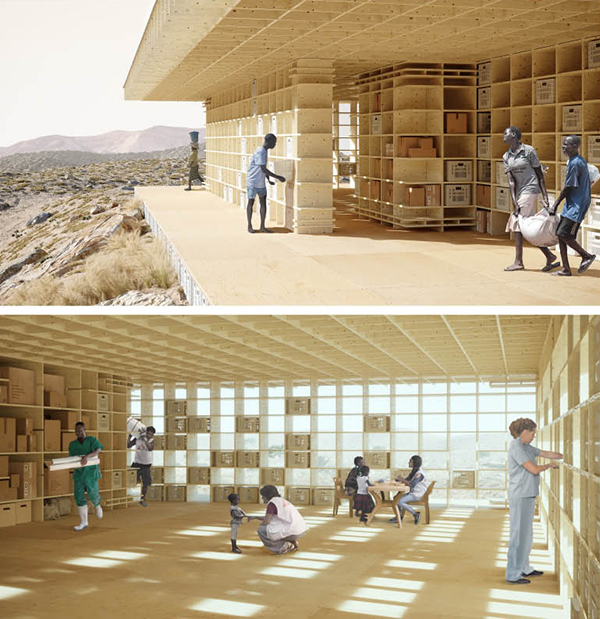 – Inspiracją dla naszego projektu był charakter pomocy humanitarnej: przejrzystość działań, szacunek do poszkodowanych oraz perspektywa odbudowania tożsamości rozbitych społeczności. Łącząc te pojęcia z podstawowymi elementami, nierozerwalnie związanymi z udzielaniem pomocy – prostymi pudełkami, w których niezbędne towary transportowane są do schronienia – staraliśmy się zintegrować sposób ich przechowywania ze strukturą architektoniczną budynku – mówią zwycięzcy konkursu. Jak tłumaczą twórcy rozwiązania, zaprojektowanie centrum kryzysowego z identycznych elementów ma zasadnicze znaczenie dla jego funkcjonalności: ergonomiczne wymiary każdej z płyt umożliwiają zapakowanie ich na jeden samochód ciężarowy i natychmiastowe przetransportowanie do miejsca przeznaczenia.