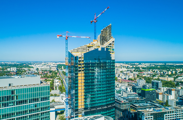 Realizowany na warszawskiej Woli biurowiec Skyliner osiągnął swoją docelową wysokość 195 metrów. Generalny wykonawca, firma Warbud, zakończył właśnie konstrukcję żelbetową budynku, a na szczycie obiektu zawisła symboliczna wiecha. Obecnie na wysokościowcu trwają najtrudniejsze i wymagające maksymalnej precyzji prace związane z montażem elewacji na najwyższych poziomach i na tzw. „pióropuszu”.