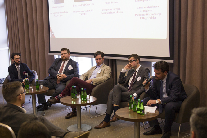W panelu dyskusyjnym, poświęconym barierom w rozwoju budownictwa, głos zabrali: dr inż. Andrzej Czapczuk - wiceprezes FBI Tasbud, Adam Ferens - wiceprezes zarządu Polimex Infrastruktura, Krzysztof Siemieński - zastępca dyrektora handlowego Regionu Północno-Wschodniego Eiffage Polska oraz Michał Siembab, radca prawny z kancelarii GKR Legal. Punktem wyjścia do dyskusji było podsumowanie wymagającego, ubiegłego roku, a wiodący temat stanowiła sytuacja generalnych wykonawców.