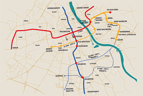 Pierwszy etap trzeciej linii warszawskiego metra to sześć stacji prowadzących z centrum na Gocław. W tym tygodniu na posiedzeniu Rady Miasta zapadnie decyzja w sprawie przesunięciu pieniędzy na pierwszy etap prac w ramach rozbudowy sieci komunikacyjnej stolicy.
