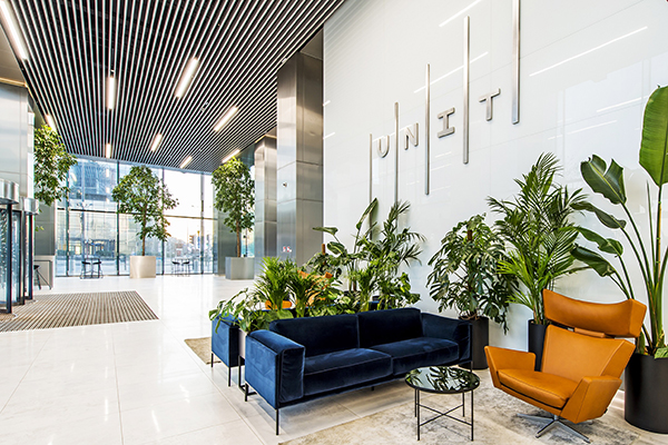 Liczący 46 pięter Warsaw Unit, nowoczesny i niskoemisyjny biurowiec Ghelamco, jako pierwszy i jedyny budynek w Polsce uzyskał certyfikację WELL Core na najwyższym poziomie platinum. Obiekt będzie także pierwszym wieżowcem w Polsce zasilanym w całości czystą energią elektryczną.