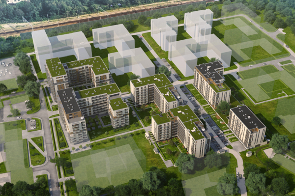 Już cztery budynki na krakowskim osiedlu Nowa 5 Dzielnica osiągnęły pełną wysokość. Obiekty A2, A3, A4 i A5 są obecnie w stanie surowym otwartym, kolejnym etapem budowy będzie doprowadzenie budynków do stanu surowego zamkniętego.